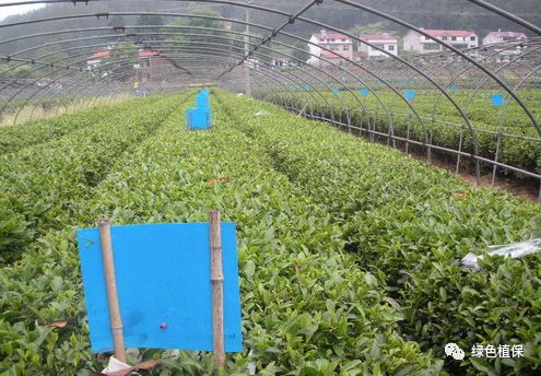 4、放置密度:防治蚜虫、斑潜蝇、粉虱等害虫,开始悬挂3-5块黄色诱虫板,以监测虫口密度。当诱虫板诱虫量增加时,每亩悬挂规格为25cm×30cm的黄板25-30块,或20cm×30cm的黄板30-40块。防治种蝇、蓟马等害虫,每亩悬挂25cm×40cm的蓝板20块,或25cm×20cm蓝板30块。具体使用数量应根据诱虫板上黏着的害虫数量增加情况而定。